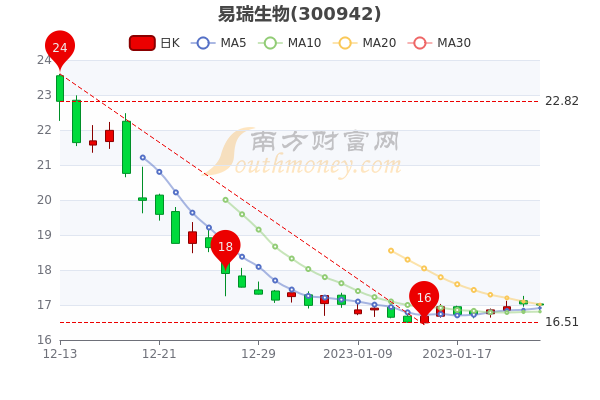 1月31日消息,易瑞生物5日内股价上涨1.53%,该股最新报17.000元跌0.18%,成交3456.99万元,换手率1.95%。