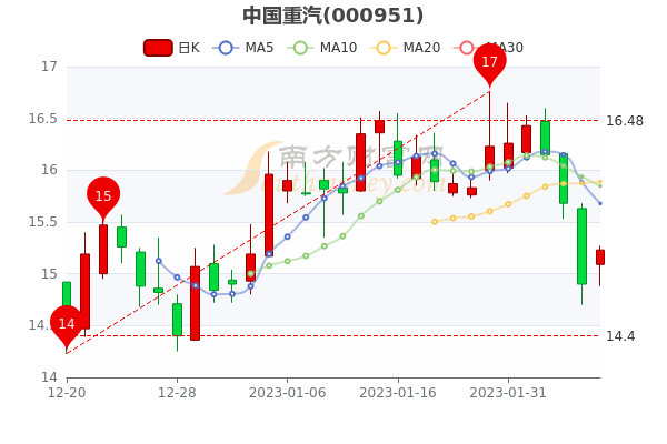 2月7日盘后消息,中国重汽7日内股价下跌6.57%,最新涨0.87%,报15.230元,换手率0.92%。