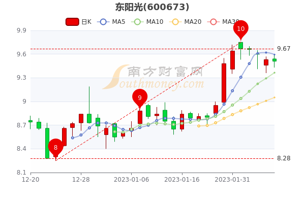 2月7日东阳光盘后消息,7日内股价上涨0.32%,今年来涨幅上涨8.94%,最新报9.510元,跌0.21%,市值为286.62亿元。