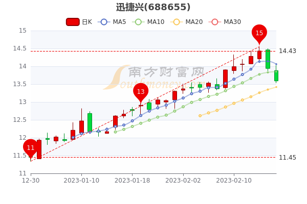 2月17日消息,迅捷兴开盘报价13.88元,收盘于13.590元,跌2.51%。今年来涨幅上涨12.21%,市盈率26.14。