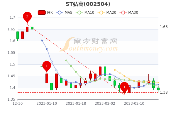 2月17日消息,ST弘高5日内股价下跌2.88%,今年来涨幅下跌-17.99%,最新报1.390元,市盈率为-3.86。