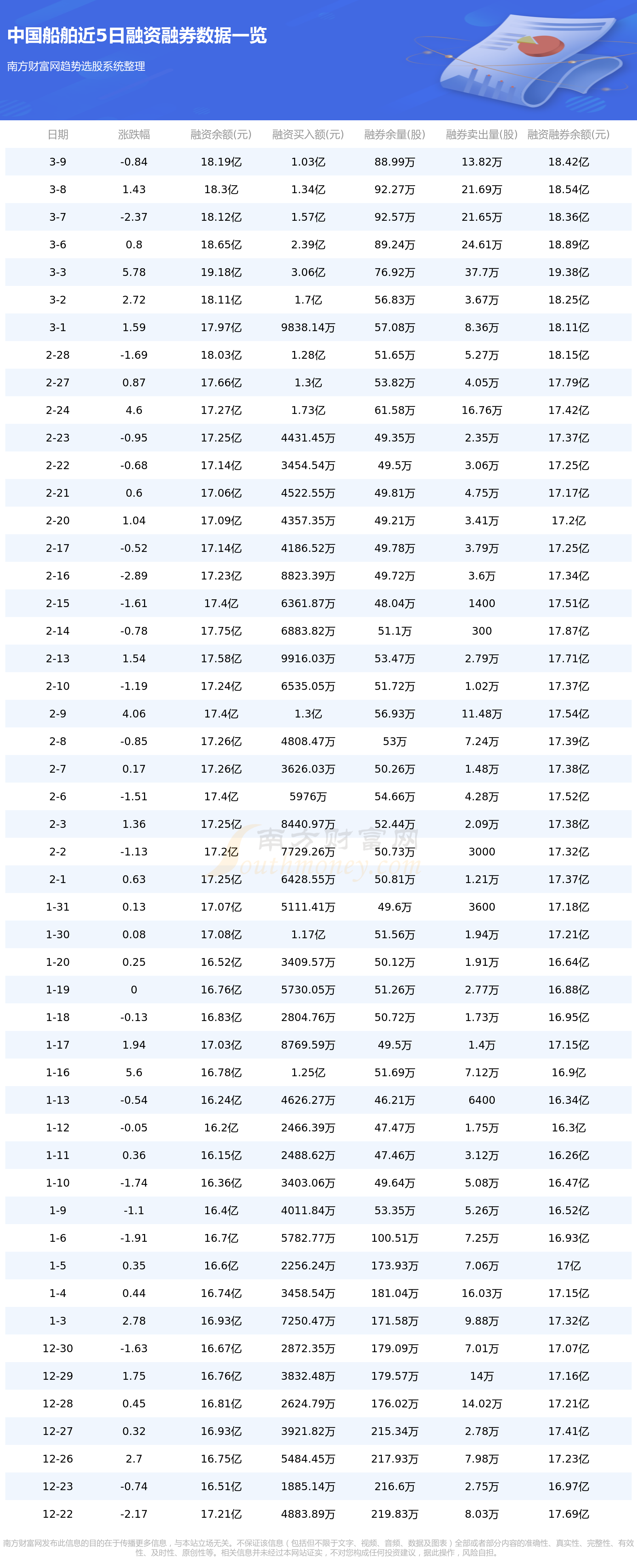 中国船舶3月9日融券信息显示,融资方面,当日融资买入1.03亿元,融资偿还1.14亿元,融资净买额-1058.24万元。融券方面,融券卖出13.82万股,融券偿还17.1万股,融券余量88.99万股,融券余额2322.6万元。融资融券余额18.42亿元。近5日融资融券数据一览见下表: