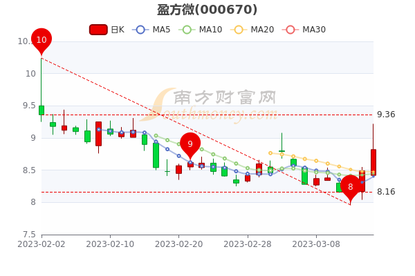 3月15日盘后消息,盈方微5日内股价上涨4.99%,截至15点收盘,该股报8.820元,涨4.48%,总市值为72.03亿元。