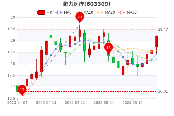 5月19日消息,维力医疗开盘报价18.74元,收盘于19.210元,涨3.28%。今年来涨幅下跌-5.57%,市盈率33.7。