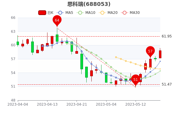 5月19日消息,思科瑞开盘报57.2元,截至收盘,该股涨3.21%,报58.830元。当前市值58.83亿。
