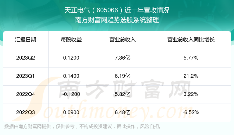 天正电气股票近一年营收情况如下表: