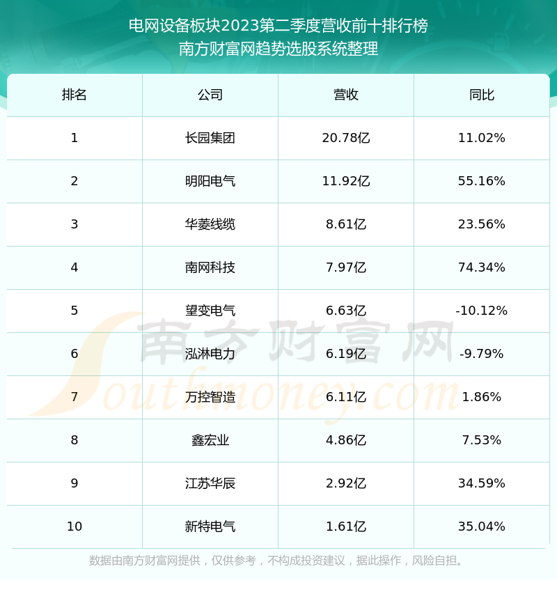 按照南方财富网趋势选股系统统计,该股所属板块为电网设备板块,该板块共有14只股票,万控智造2023第二季度营收在该板块中排名为第7名,该板块2023第二季度营收排名前十的股票如下表: