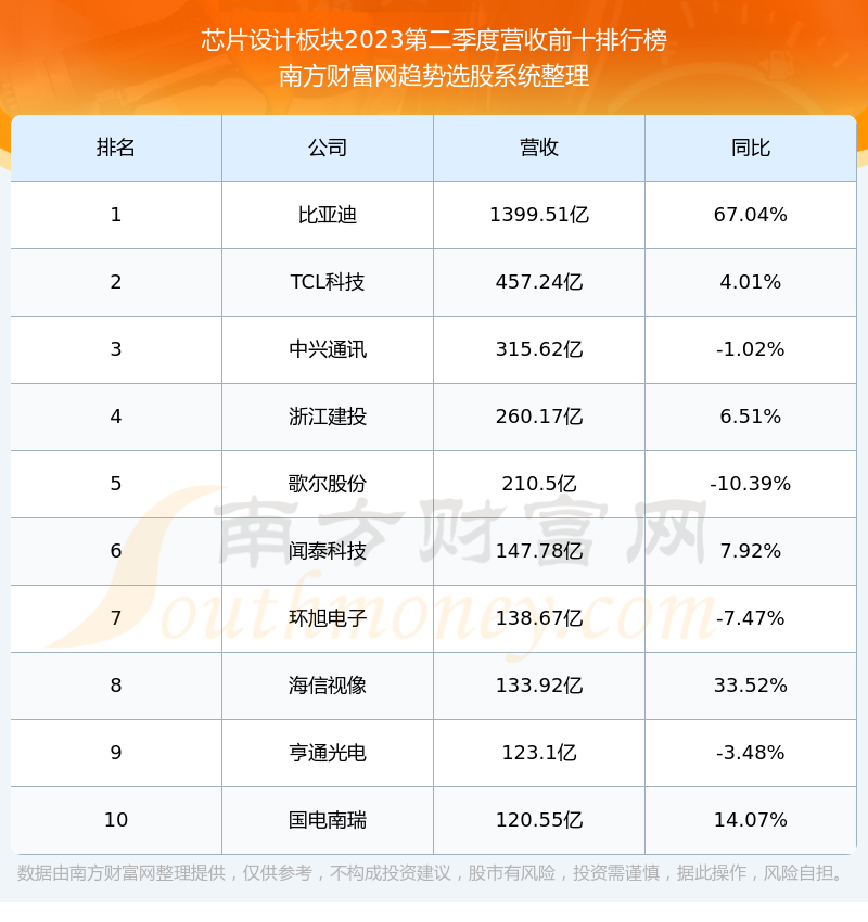 按照南方财富网趋势选股系统统计,该股所属板块为芯片设计板块,该板块共有144只股票,芯原股份2023第二季度营收在该板块中排名为第58名,该板块2023第二季度营收排名前十的股票如下表: