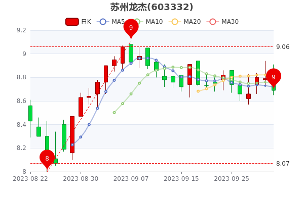 10月10日消息,苏州龙杰今年来涨幅上涨2.99%,截至下午三点收盘,该股报8.690元,跌1.14%,换手率0.65%。