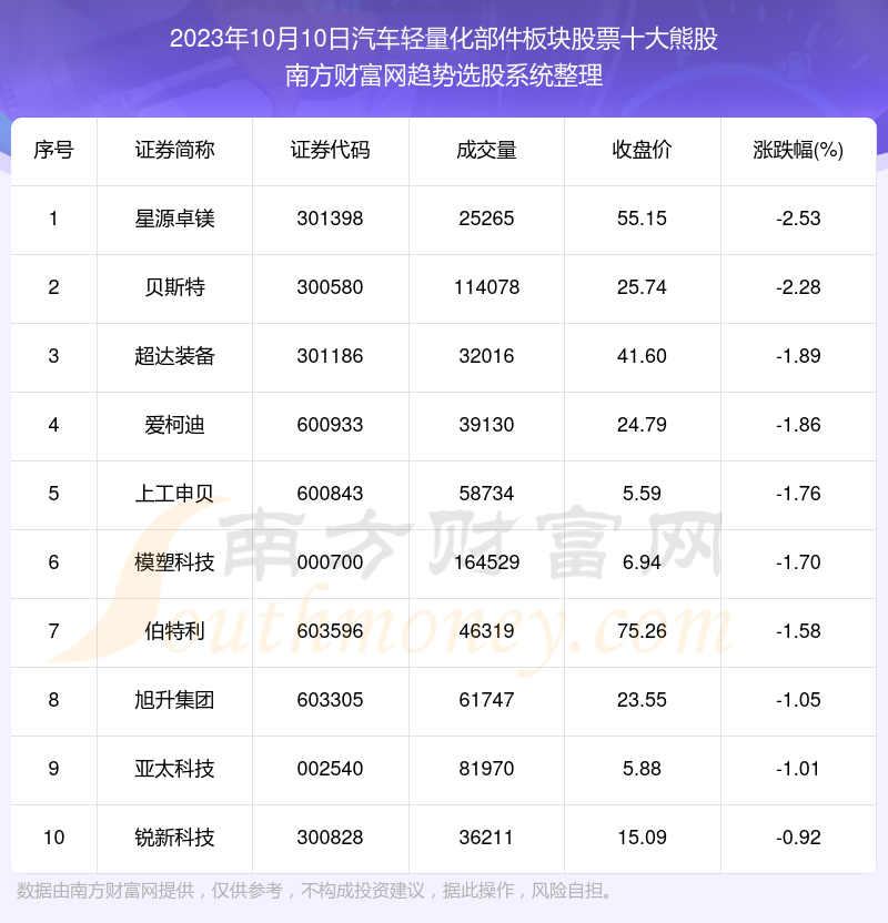 以上内容就是对【股票期货配资 【数据复盘】汽车轻量化部件板块股票2023年10月10日十大熊股名单】的解答,如果解决了您的问题欢迎把链接分享给朋友(https://www.youge168.com/mod_article-article_content-article_id-48133.html)