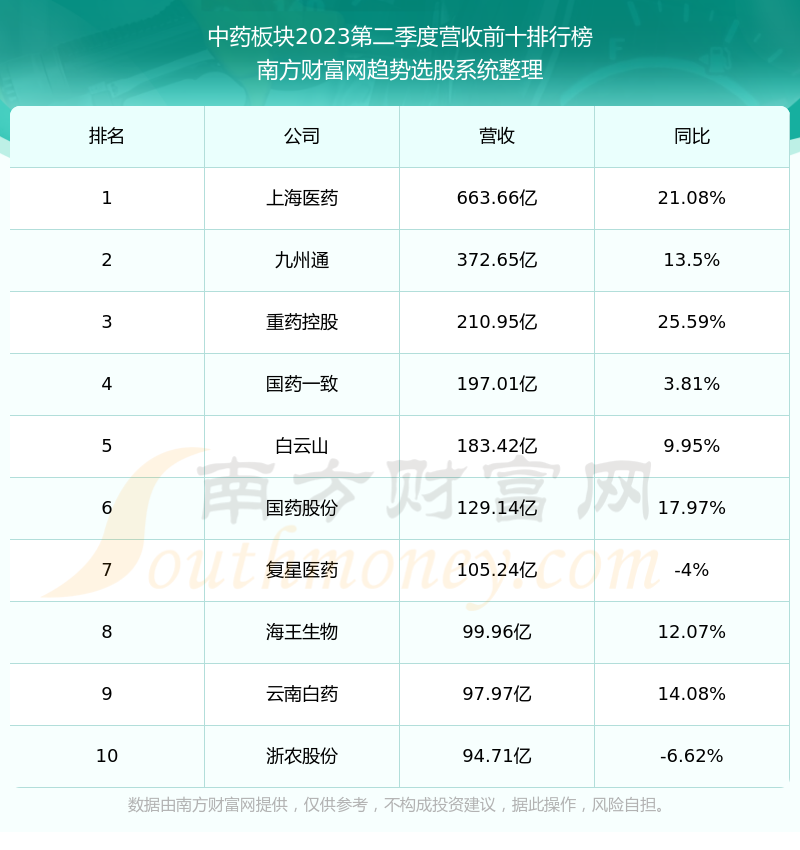 按照南方财富网趋势选股系统统计,该股所属板块为中药板块,该板块共有161只股票,ST康美2023第二季度营收在该板块中排名为第43名,该板块2023第二季度营收排名前十的股票如下表: