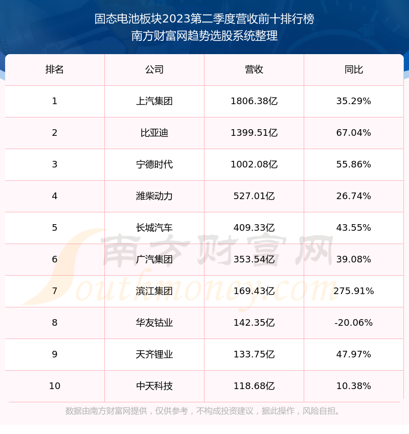 按照南方财富网趋势选股系统统计,该股所属板块为固态电池板块,该板块共有79只股票,众源新材2023第二季度营收在该板块中排名为第79名,该板块2023第二季度营收排名前十的股票如下表: