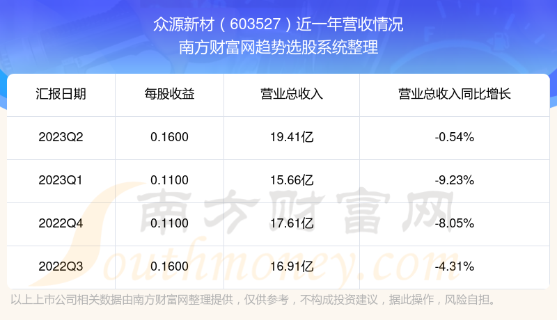 众源新材股票近一年营收情况如下表: