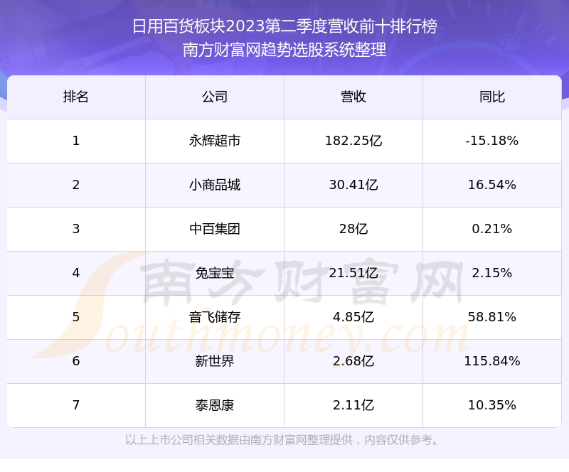 按照南方财富网趋势选股系统统计,该股所属板块为日用百货板块,该板块共有7只股票,三江购物2023第二季度营收在该板块中排名为第7名,该板块2023第二季度营收排名前十的股票如下表: