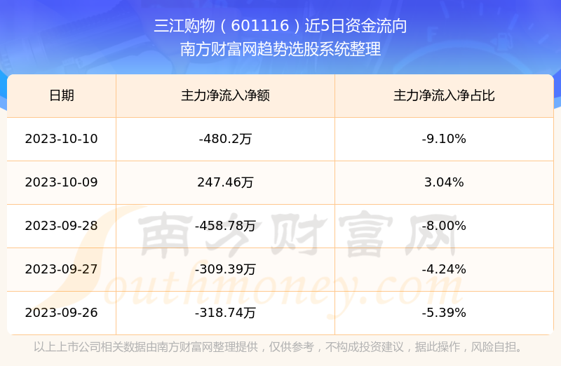 二、三江购物(601116)近期盘面、资金面情况