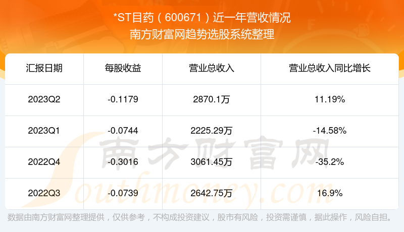 *ST目药股票近一年营收情况如下表: