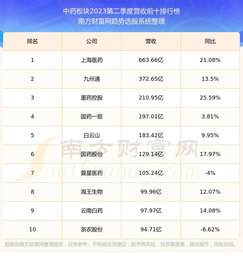 按照南方财富网趋势选股系统统计,该股所属板块为中药板块,该板块共有161只股票,*ST目药2023第二季度营收在该板块中排名为第159名,该板块2023第二季度营收排名前十的股票如下表:
