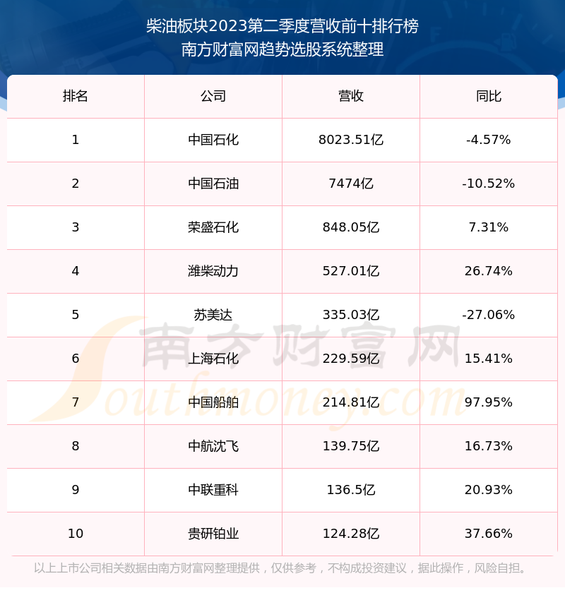 按照南方财富网趋势选股系统统计,该股所属板块为柴油板块,该板块共有77只股票,和顺石油2023第二季度营收在该板块中排名为第42名,该板块2023第二季度营收排名前十的股票如下表: