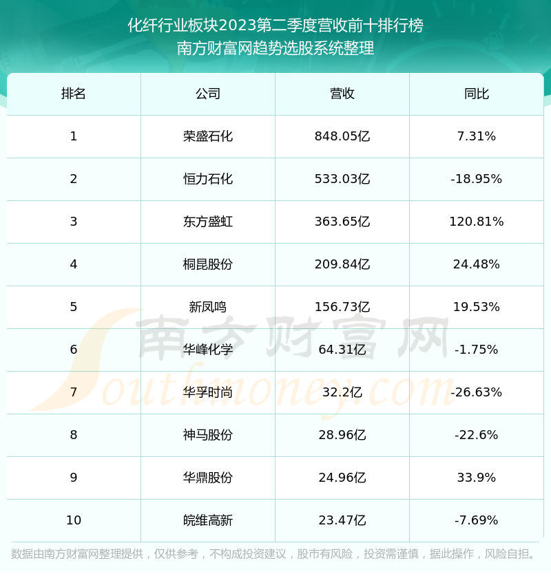 按照南方财富网趋势选股系统统计,该股所属板块为化纤行业板块,该板块共有30只股票,苏州龙杰2023第二季度营收在该板块中排名为第22名,该板块2023第二季度营收排名前十的股票如下表: