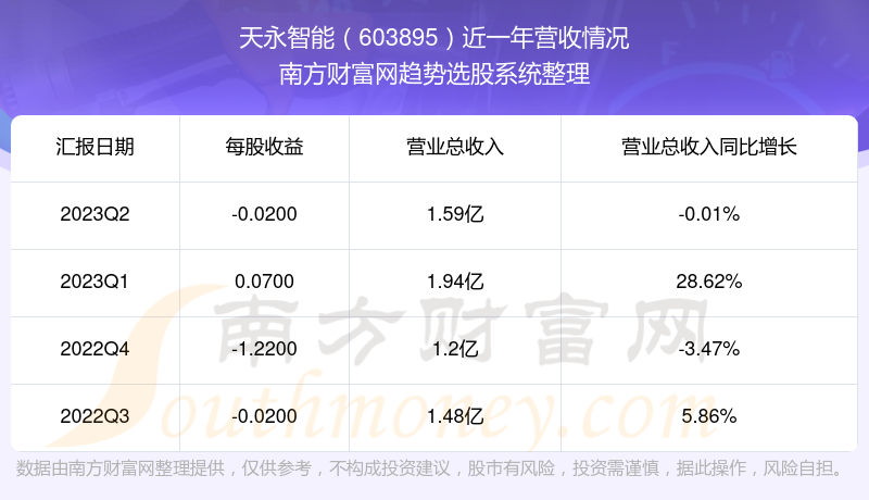 按照南方财富网趋势选股系统统计,该股所属板块为新能源车板块,该板块共有544只股票,天永智能2023第二季度营收在该板块中排名为第482名,该板块2023第二季度营收排名前十的股票如下表: