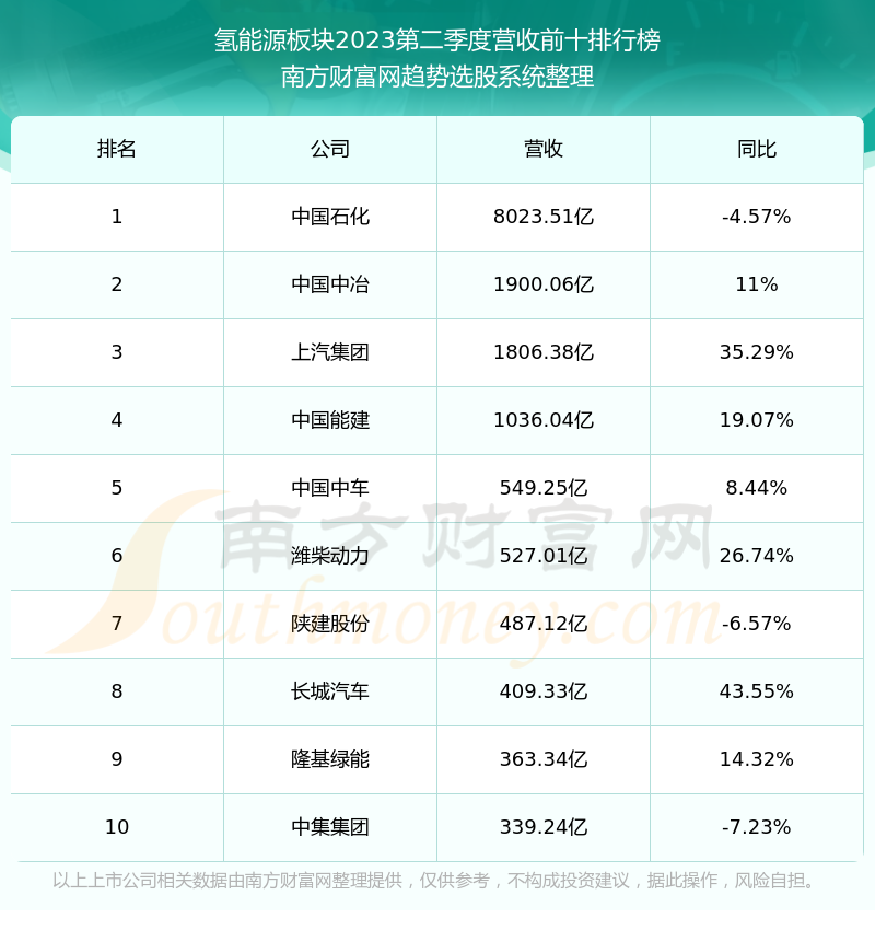 按照南方财富网趋势选股系统统计,该股所属板块为氢能源板块,该板块共有279只股票,兰石重装2023第二季度营收在该板块中排名为第116名,该板块2023第二季度营收排名前十的股票如下表: