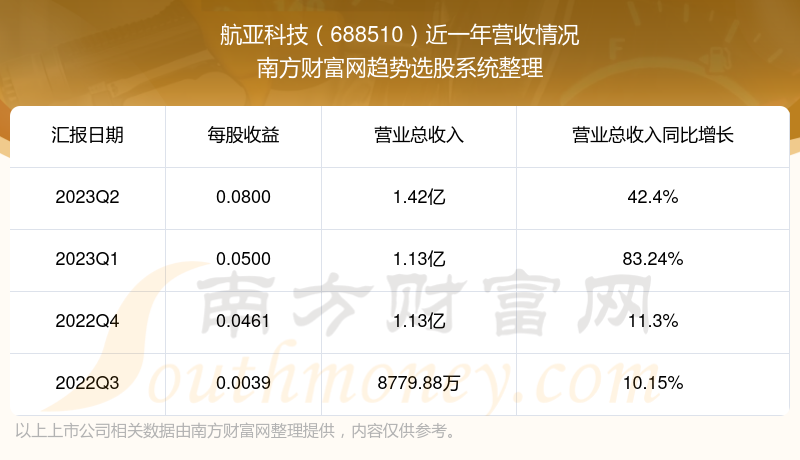 航亚科技2023年第二季度公司实现营业收入1.42亿元,同比42.4%;归母净利润2149.11万元,同比284.78%。