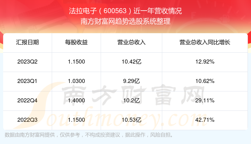 法拉电子股票近一年营收情况如下表: