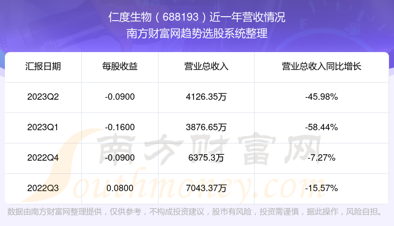 仁度生物(688193)披露2023年第二季度报告,报告期实现营收4126.35万元,同比-45.98%;归母净利润-380.03万元,同比-174.3%;扣非净利润-468.17万元,同比-562.54%。