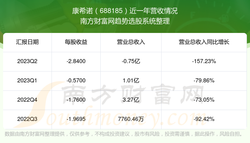 康希诺股票近一年营收情况如下表: