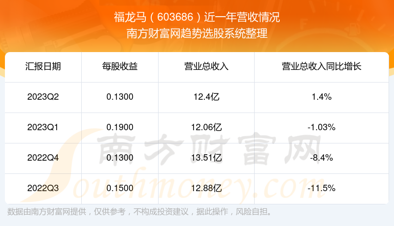 福龙马股票近一年营收情况如下表: