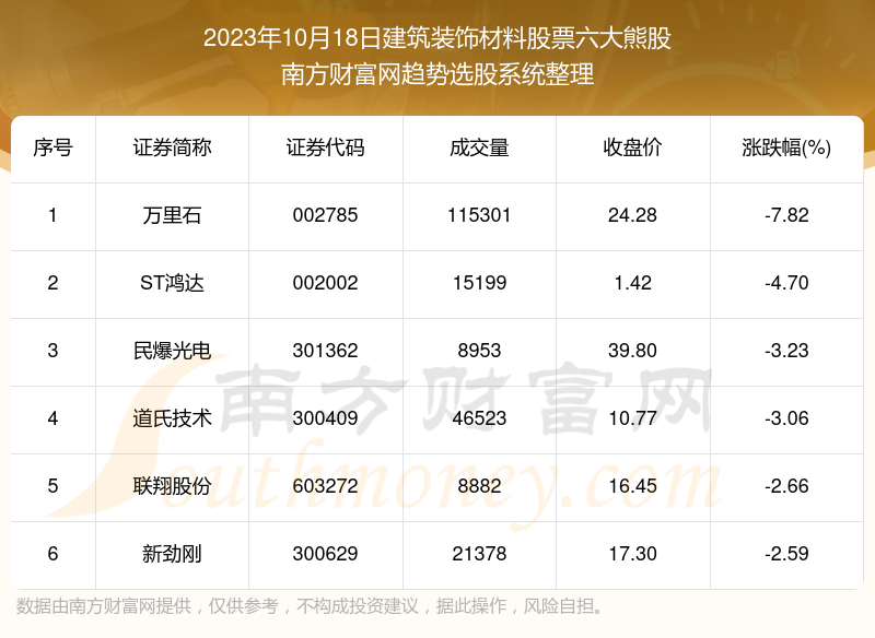 以上内容就是对【股票配资网站 数据解盘|2023年10月18日建筑装饰材料股票六大熊股名单】的解答,如果解决了您的问题欢迎把链接分享给朋友(https://www.youge168.com/mod_article-article_content-article_id-48673.html)