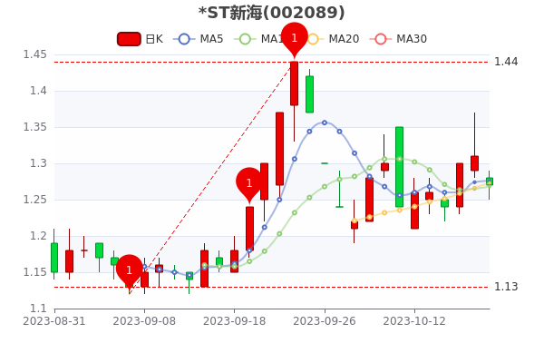 *ST新海2023年第二季度营收2385.64万,净利润-937.78万,每股收益0,市盈率-5.46。