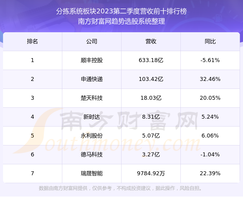 按照南方财富网趋势选股系统统计,该股所属板块为分拣系统板块,该板块共有7只股票,中科微至2023第二季度营收在该板块中排名为第7名,该板块2023第二季度营收排名前十的股票如下表: