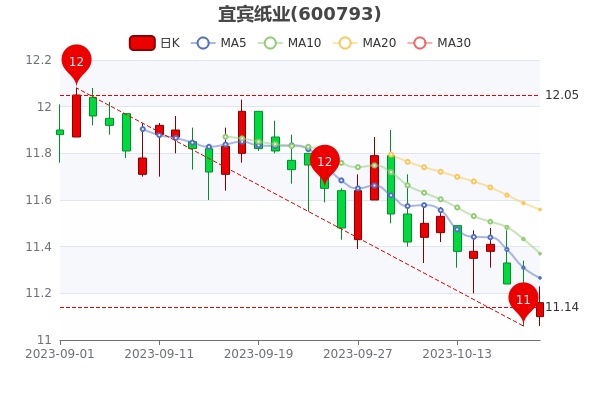 10月20日收盘消息,宜宾纸业最新报价11.160元,3日内股价下跌0.72%,市盈率为66.71。