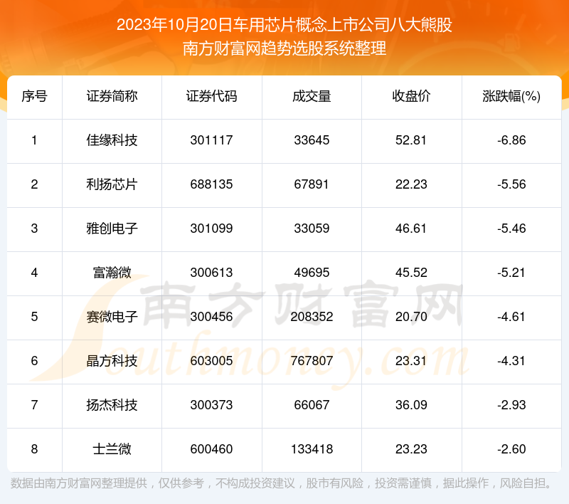 以上内容就是对【翻翻股票配资 【盘后整理】车用芯片概念上市公司2023年10月20日八大熊股名单】的解答,如果解决了您的问题欢迎把链接分享给朋友(https://www.youge168.com/mod_article-article_content-article_id-48910.html)