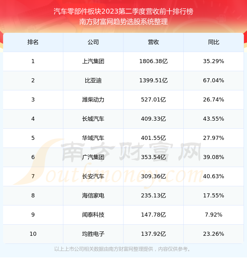 按照南方财富网趋势选股系统统计,该股所属板块为汽车零部件板块,该板块共有430只股票,日盈电子2023第二季度营收在该板块中排名为第340名,该板块2023第二季度营收排名前十的股票如下表: