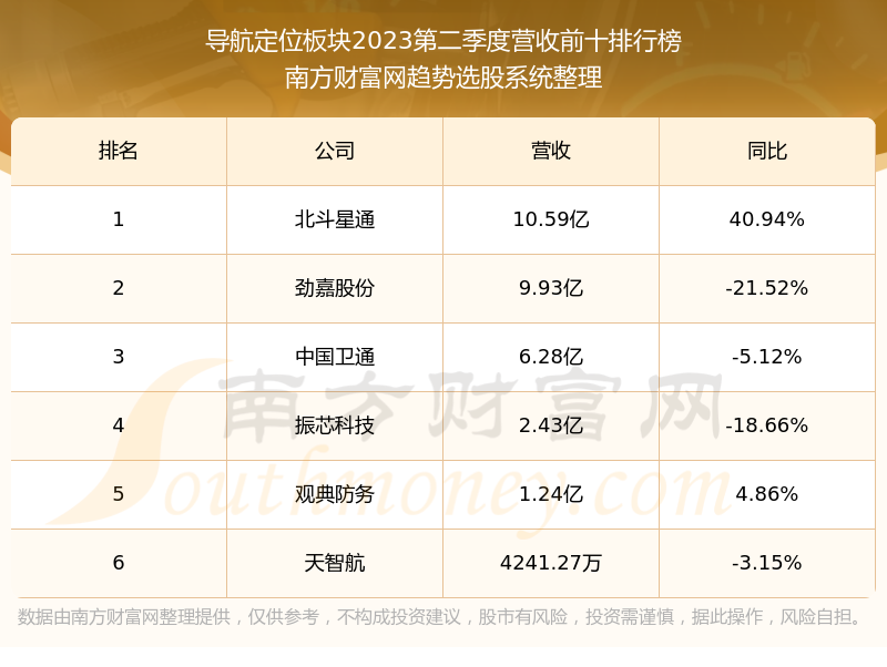按照南方财富网趋势选股系统统计,该股所属板块为导航定位板块,该板块共有6只股票,天智航2023第二季度营收在该板块中排名为第6名,该板块2023第二季度营收排名前十的股票如下表: