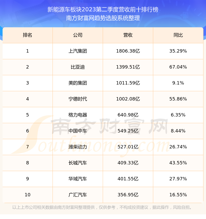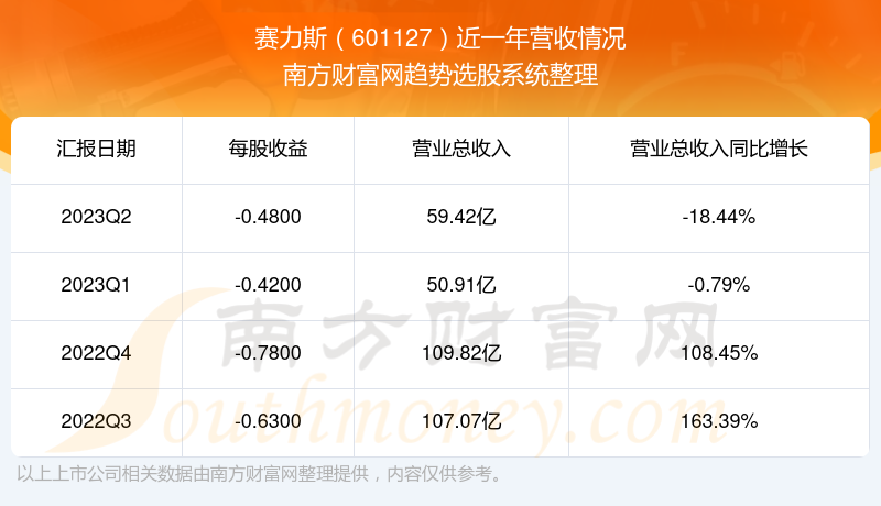 按照南方财富网趋势选股系统统计,该股所属板块为新能源车板块,该板块共有544只股票,赛力斯2023第二季度营收在该板块中排名为第58名,该板块2023第二季度营收排名前十的股票如下表: