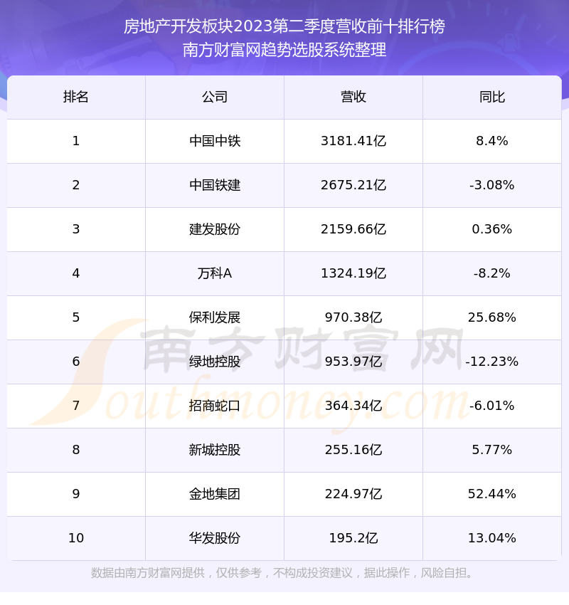 按照南方财富网趋势选股系统统计,该股所属板块为房地产开发板块,该板块共有141只股票,城投控股2023第二季度营收在该板块中排名为第87名,该板块2023第二季度营收排名前十的股票如下表: