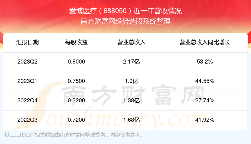 爱博医疗(688050)披露2023年第二季度报告,报告期实现营收2.17亿元,同比53.2%;归母净利润8478.38万元,同比30.8%;扣非净利润7805.98万元,同比29.72%。