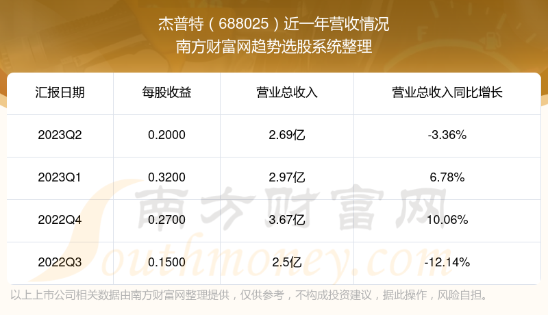 2023年第二季度,杰普特营收同比-3.36%,净利润同比46.4%。