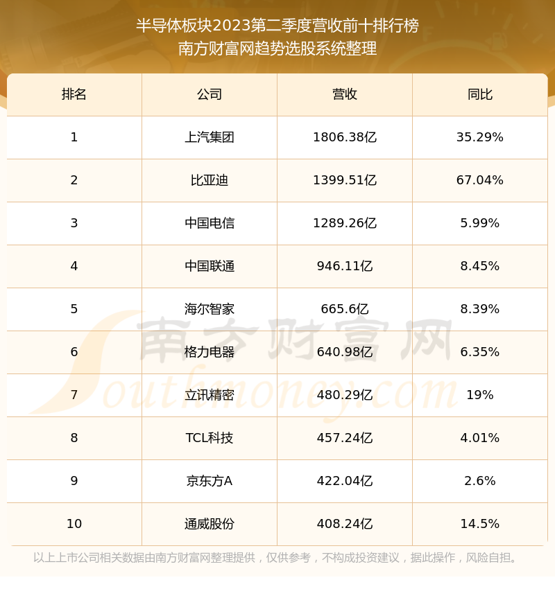 按照南方财富网趋势选股系统统计,该股所属板块为半导体板块,该板块共有463只股票,长电科技2023第二季度营收在该板块中排名为第33名,该板块2023第二季度营收排名前十的股票如下表: