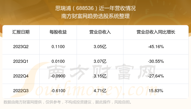 思瑞浦股票近一年营收情况如下表: