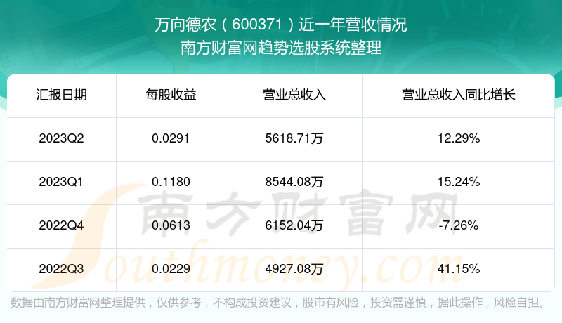 万向德农2023年第二季度财报显示,公司主营收入5618.71万元,同比12.29%;归母净利润852.13万元,同比27.63%;扣非净利润837.04万元,同比47.02%。