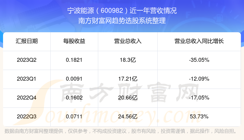 宁波能源股票近一年营收情况如下表: