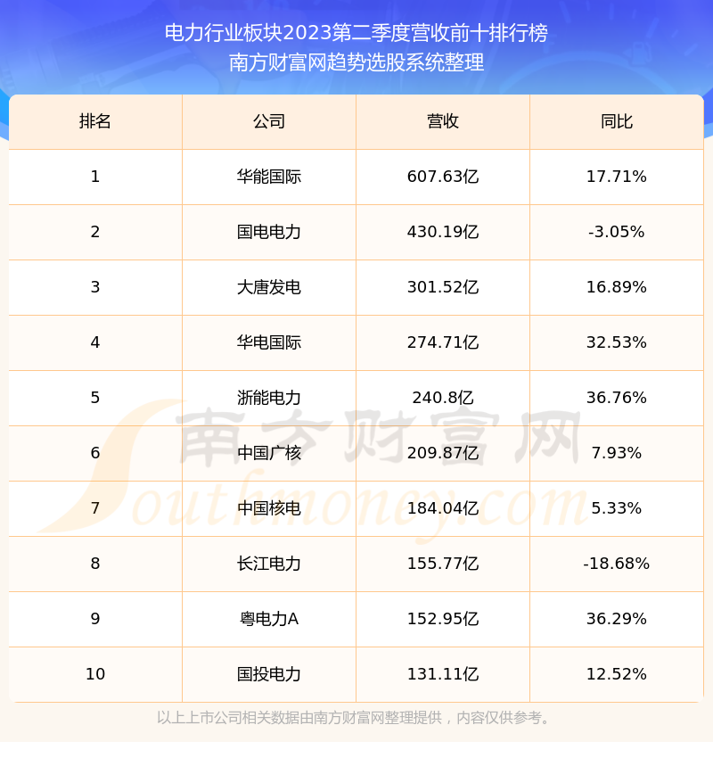 按照南方财富网趋势选股系统统计,该股所属板块为电力行业板块,该板块共有89只股票,宁波能源2023第二季度营收在该板块中排名为第44名,该板块2023第二季度营收排名前十的股票如下表: