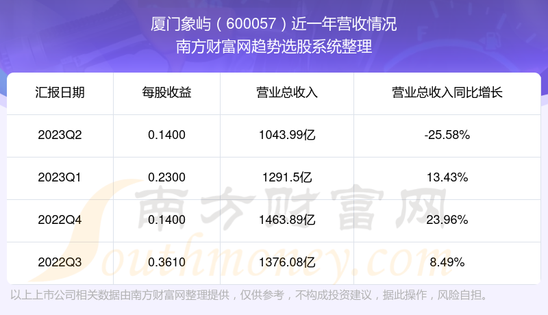 厦门象屿股票近一年营收情况如下表:
