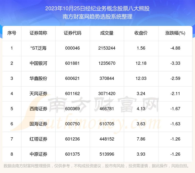 以上内容就是对【翻翻股票配资 【数据复盘】经纪业务概念股票2023年10月25日八大熊股一览】的解答,如果解决了您的问题欢迎把链接分享给朋友(https://www.youge168.com/mod_article-article_content-article_id-49250.html)