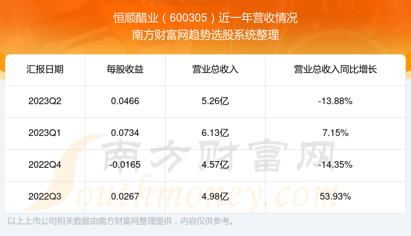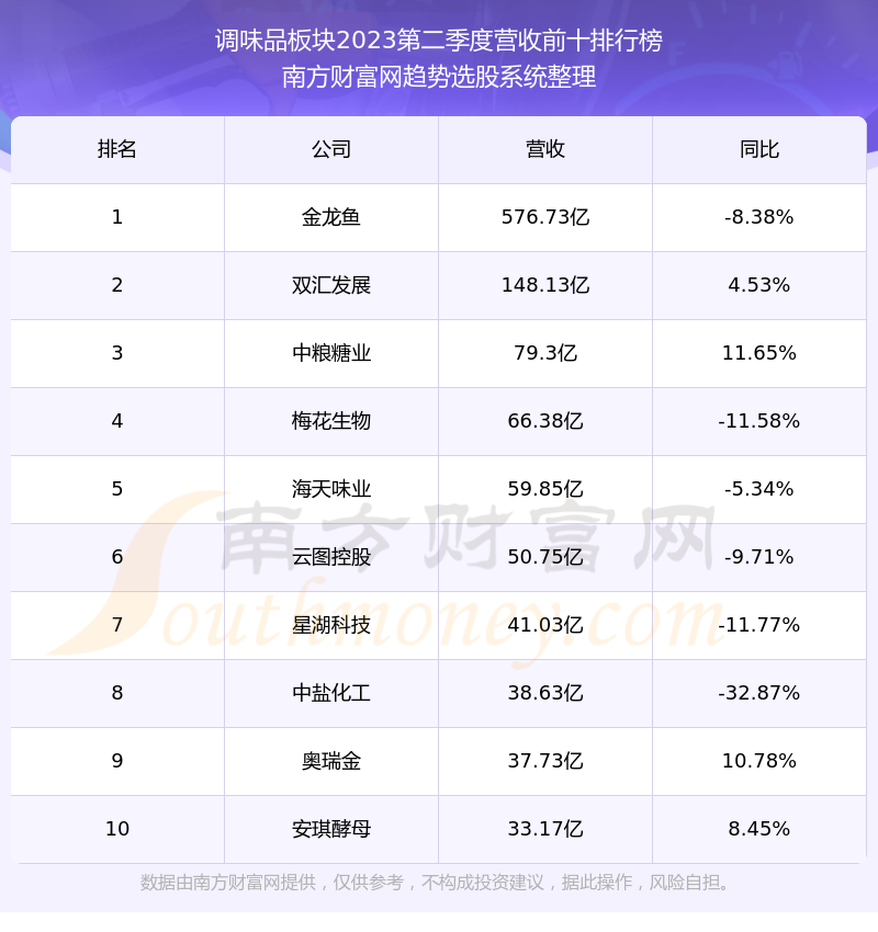按照南方财富网趋势选股系统统计,该股所属板块为调味品板块,该板块共有53只股票,恒顺醋业2023第二季度营收在该板块中排名为第37名,该板块2023第二季度营收排名前十的股票如下表: