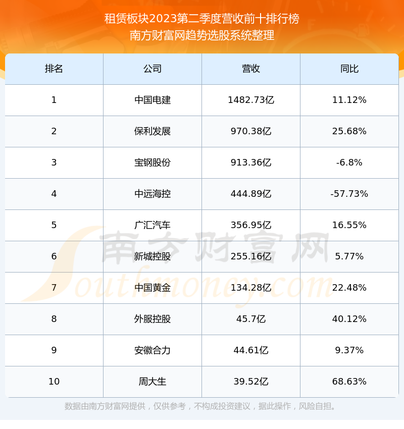 按照南方财富网趋势选股系统统计,该股所属板块为租赁板块,该板块共有34只股票,*ST同达2023第二季度营收在该板块中排名为第34名,该板块2023第二季度营收排名前十的股票如下表:
